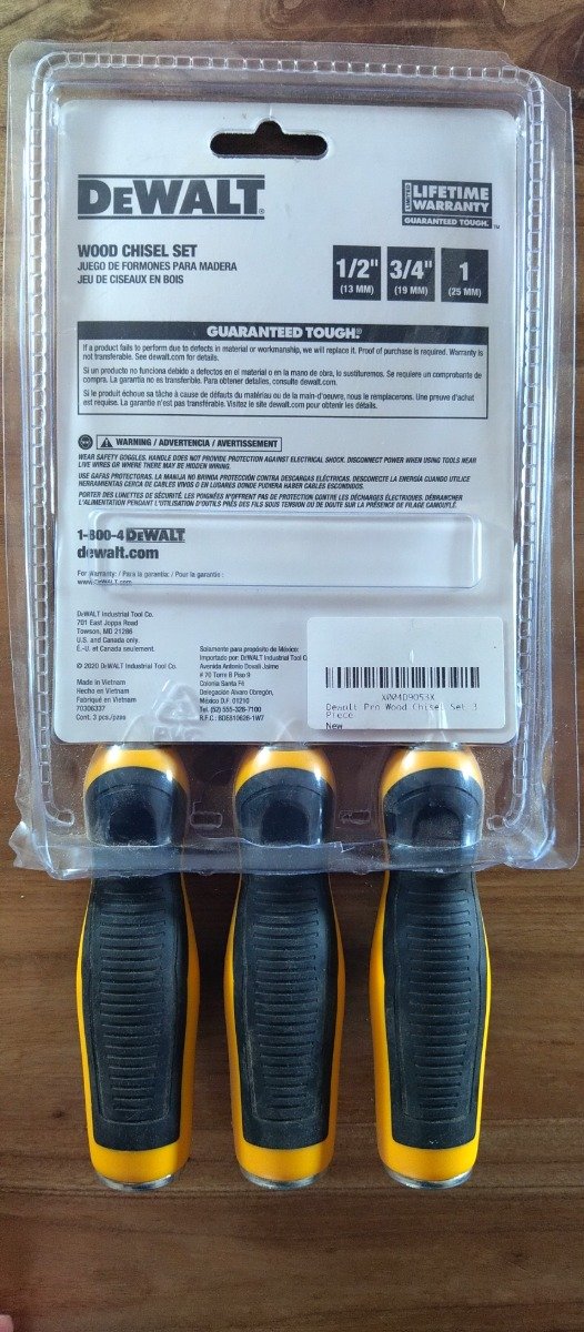 Juego de 3 formones Dewalt nuevos en blister sellado, 3 formones de las medidas más usadas. también tienen cap metálico, muy robustos ideales para uso en obra.
